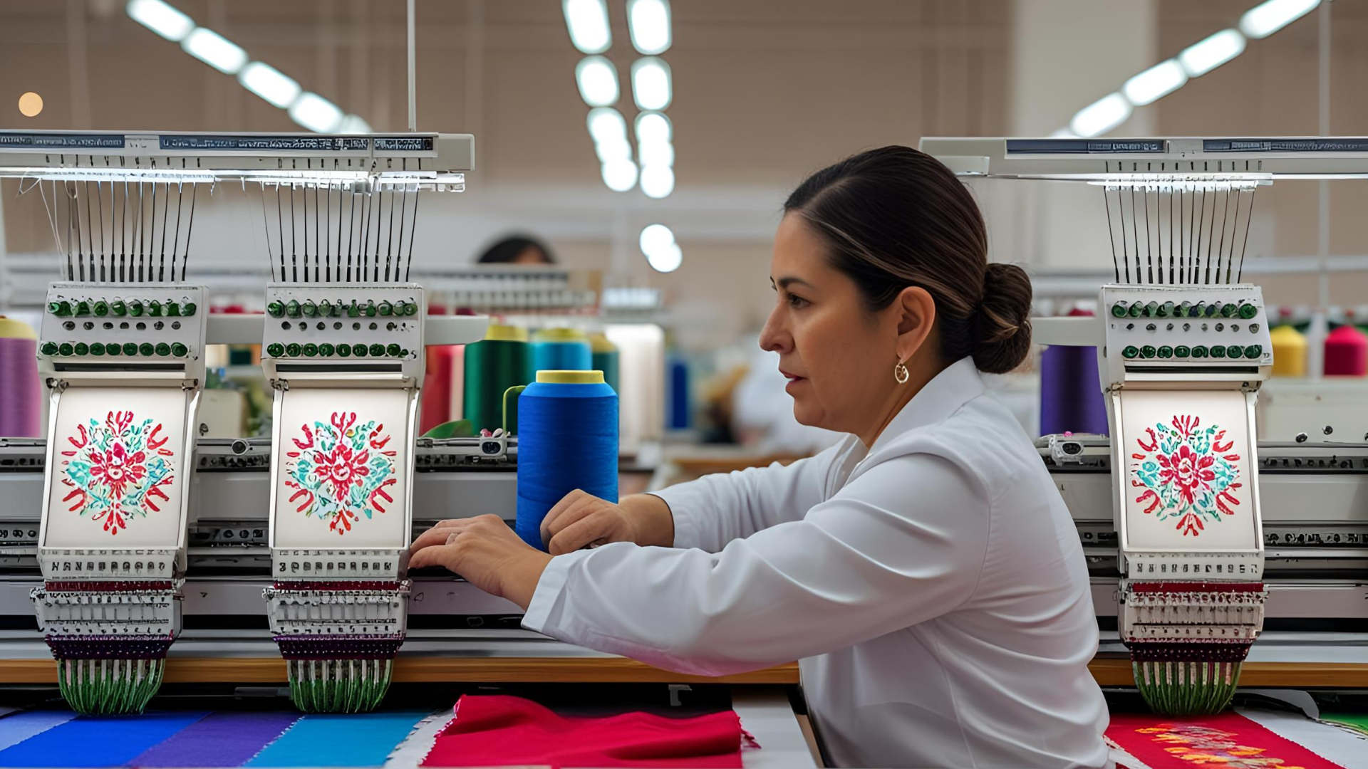 Máquinas multicabezal con control digital de puntadas y simulación previa.