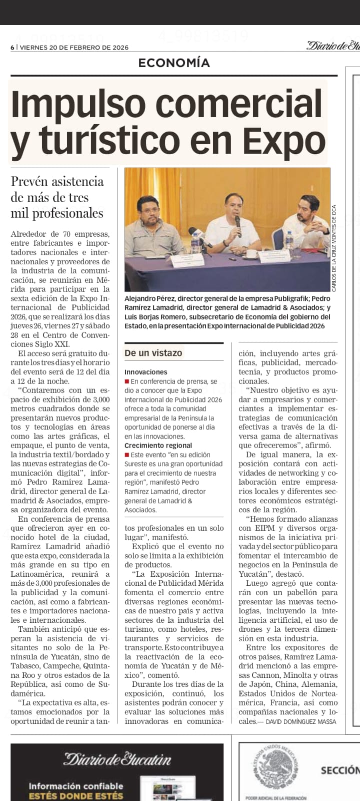 Fuente: El Diario de Yucatán https://www.yucatan.com.mx/merida/2026/02/20/impulso-comercial-y-turistico-en-la-expo-internacional-de-publicidad-2026.html